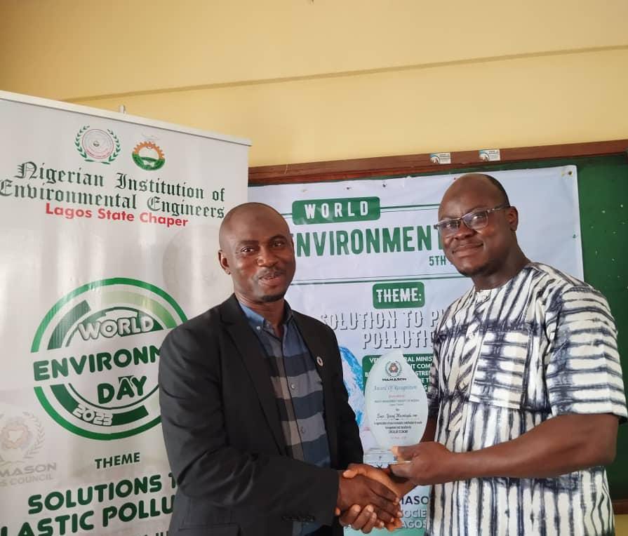 He picked up his award at the World Environment Day 2023 Celebration by the Federal Ministry of Environment. The ceremony was in collaboration with the WAMASON Lagos Council and held at the Federal Ministry of Environment Auditorium, Surulere, Lagos.